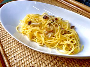 <れなりオイルのキノコペペロンチーノ>