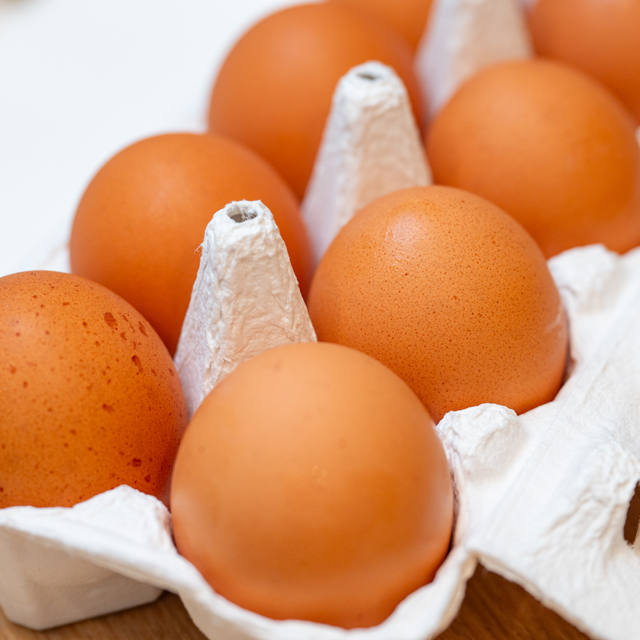 ストレスがかからないよう大切に育てられる平飼いの鶏の卵。