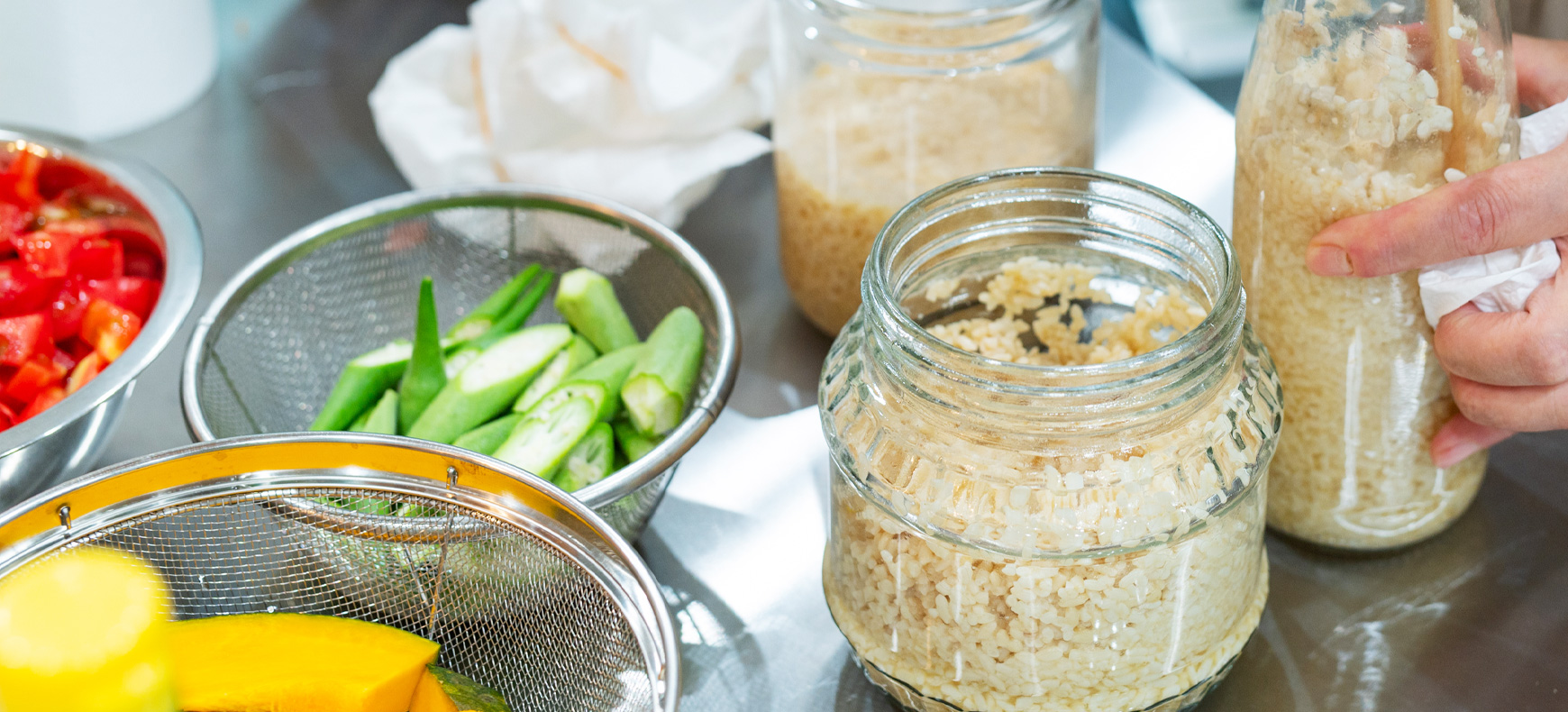 天然塩など本物だけを使います。砂糖の代わりに味醂や、自家製の甘酒を使うことも。
